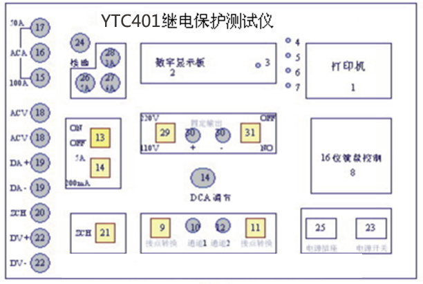 微機(jī)繼電保護(hù)測試儀是專業(yè)用于電力工作中的電力設(shè)備,是繼保工作者的好助手。儀天成電力設(shè)備有限公司的YTC401微機(jī)繼電保護(hù)測試儀正是擁有體積小,重量輕才成為了繼保工作者的首要選擇。YTC401單相繼電保護(hù)測試儀采用單片微機(jī)技術(shù),由自動(dòng)同期數(shù)字毫秒表,邏輯控制單元,多功能數(shù)顯單元,高精度數(shù)據(jù)采集及處理單元,電流、電壓輸出單元,過載及超量程保護(hù)單元等部分組成,自帶打印及顯示,測試過程全自動(dòng),大大提高測量精度及工作效率。本文就YTC401微機(jī)繼電保護(hù)測試儀的面板以及菜單詳情做以下的講解。