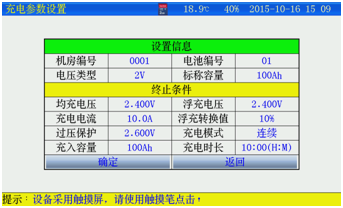 充電時長:最小1分鐘;最大99小時59分。設(shè)置完成并確認(rèn)接線正確后,按確定進(jìn)入開始充電。