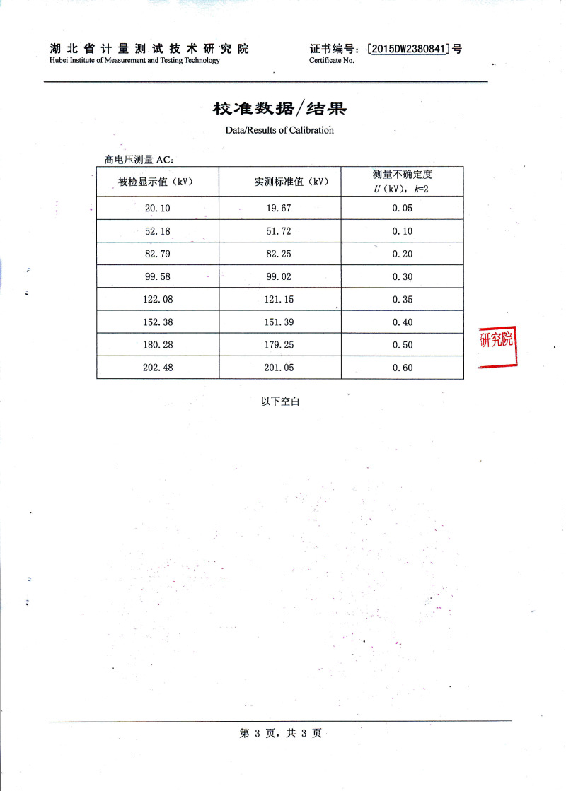 | 諧振電壓 | 0~1000kV |