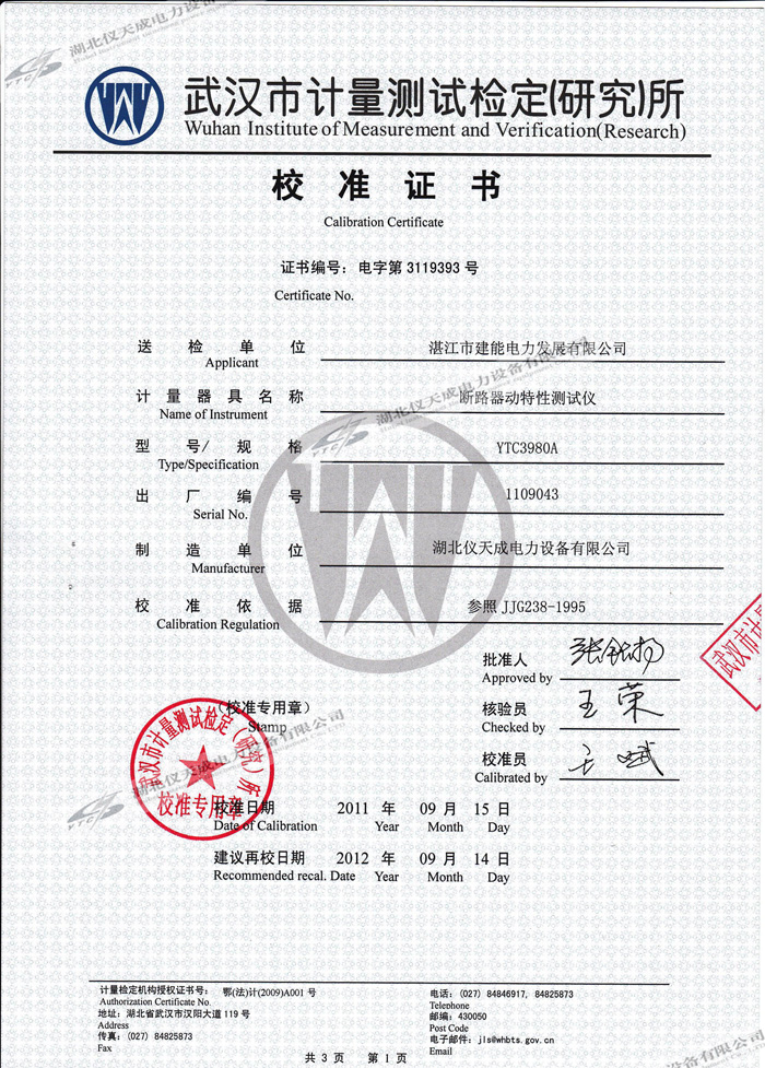 上一篇:YTC850-810kVA/270kV/45kV變頻串聯(lián)諧振試驗(yàn)裝置的資質(zhì)證書(shū) 下一篇:YTC2220數(shù)字雙鉗相位伏安表的資質(zhì)證書(shū)