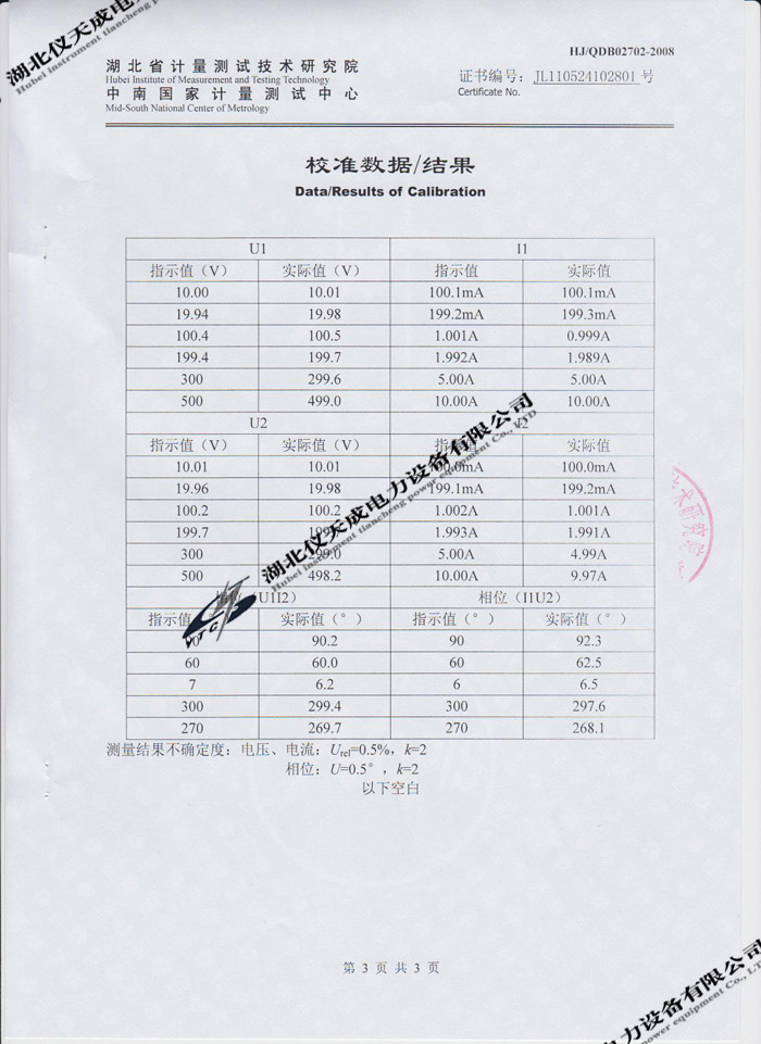 轉(zhuǎn)載:"YTC2220數(shù)字雙鉗相位伏安表的資質(zhì)證書(shū)" 請(qǐng)注明來(lái)源于儀天成電力。 更多技術(shù)問(wèn)題請(qǐng)致電儀天成電力客戶(hù)服務(wù):027-87876585,技術(shù)部專(zhuān)線(xiàn):027-87876585,在線(xiàn)客服:719388481